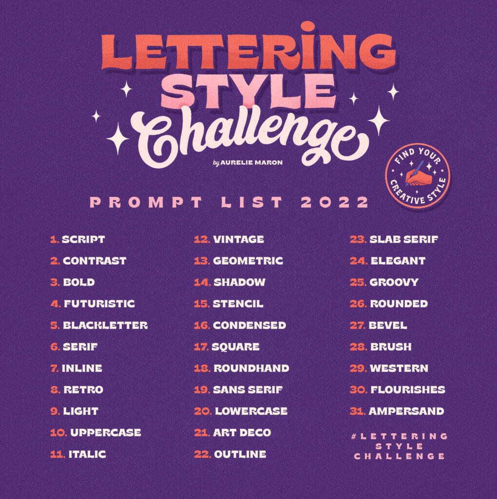 Here you can find all the entries I created for the 2022 lettering style challenge. Throughout October, a large group of lettering enthusiasts and creatives, including me, created and posted a new piece of lettering every day on Instagram, following the list below.