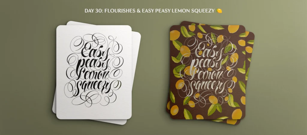 This challenge wasn’t just about creating a bunch of beautiful lettering pieces for my portfolio, but about establishing a standard work process and setting boundaries and restrictions to meet the daily deadline. I had tons of fun, and I learned a bunch of new styles and tricks in Procreate. It also helped me discover my style and what I am drawn to, and that my style is not always suitable for a fast-paced challenge like this. I love elaborate, detailed letterforms with a ton of letter treatment and illustrations.